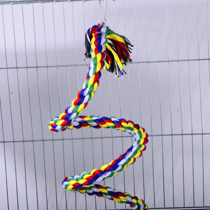 Parrot Standing Stick Parrot Climbing Rope This product is made of thick stainless steel wire. The non-toxic, edible and brightly colored rope is used to attract parrots and chew healthy for parrots. At the same time, it is also a climbing rope, which can be bent at will to allow your parrot to climb up and down, and the bell can emit crisp music to make the parrot more enjoyable. Size Straighten 0.5 meters long and weigh 110g Straighten the length of 1 meter 180g Straighten 1.5 meters long 270g Straighten 2 meters long 370g Handmade, there may be an error of 1 to 3 cm